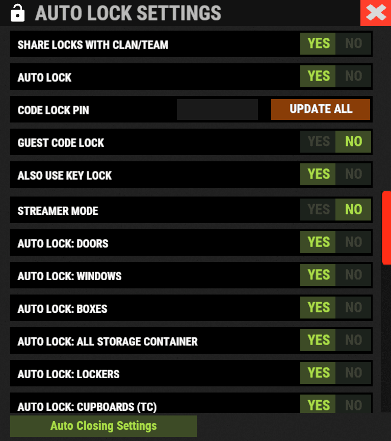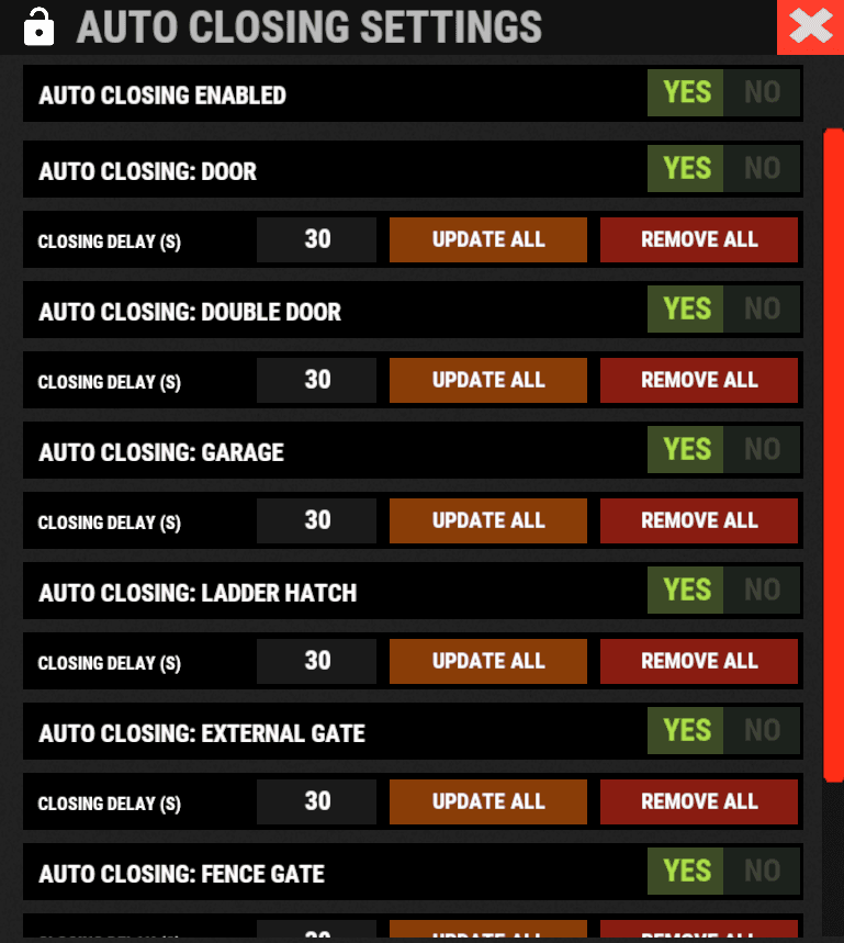✔️ Recommended: Set most settings to YES before placing lockable objects and doors.